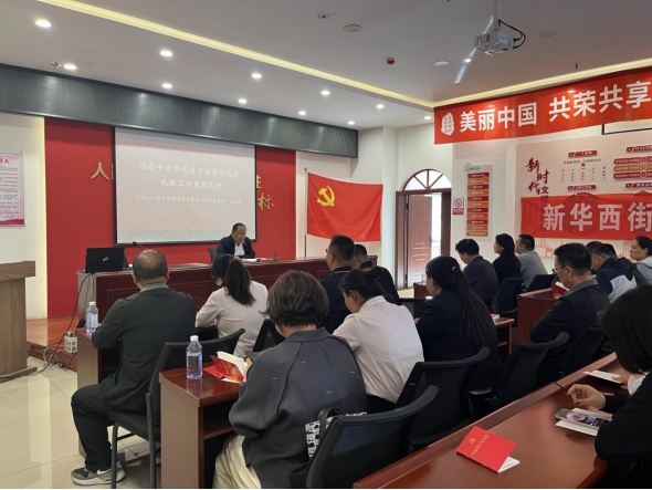 活動在莊嚴的國歌聲中拉開序幕,完成規(guī)定動作后,參會同志認真學(xué)習(xí)了《內(nèi)蒙古自治區(qū)全方位建設(shè)模范自治區(qū)促進條例》、習(xí)近平總書記關(guān)于加強和改進民族工作的重要論述、黨的民族理論政策、“五句話”的事實和道理、《中華人民共和國民族區(qū)域自治法》《內(nèi)蒙古自治區(qū)促進民族團結(jié)進步條例》《中國共產(chǎn)黨內(nèi)蒙古歷史》(第一卷)等內(nèi)容。新華西街道辦事處黨工委常務(wù)主任高武鴻以《習(xí)近平總書記關(guān)于加強和改進民族工作重要思想》為題開展了宣講,部分黨員代表就鑄牢中華民族共同體意識進行了專題研討。