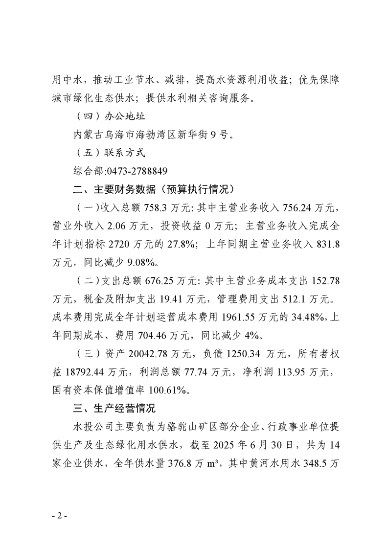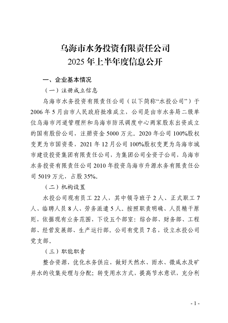 - 2025-10-22烏海市水務(wù)投資有限責(zé)任公司2025年第三季度信息公開(kāi)