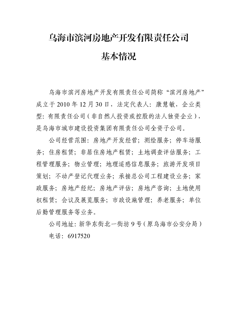 - 2024-07-09烏海市濱河房地產(chǎn)開發(fā)有限責(zé)任公司2024年第二季度信息公開