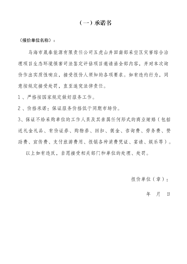 烏海市晟泰能源有限責任公司五虎山井田南部采空區(qū)災害綜合治理項目生態(tài)環(huán)境損害司法鑒定評估項目詢價公告