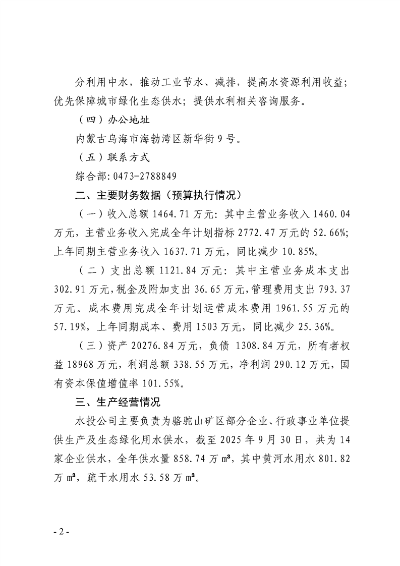 - 2025-07-28烏海市水務投資有限責任公司2025年第二季度信息公開