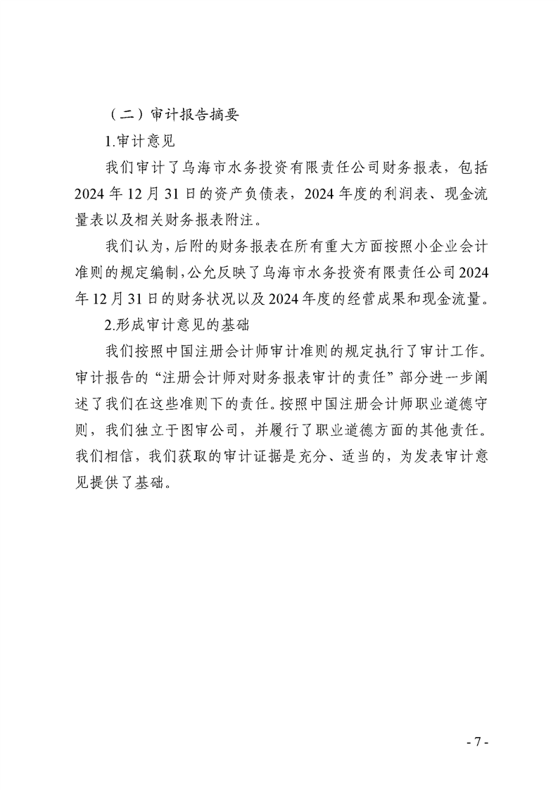 - 2025-03-10烏海市水務投資有限責任公司2024年度信息公開報告