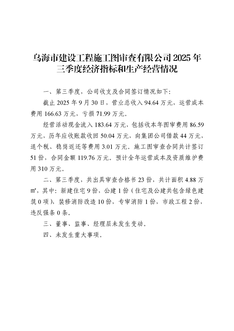 - 2024-10-15烏海市建設(shè)工程施工圖審查有限公司2024年第三季度信息公開(kāi)