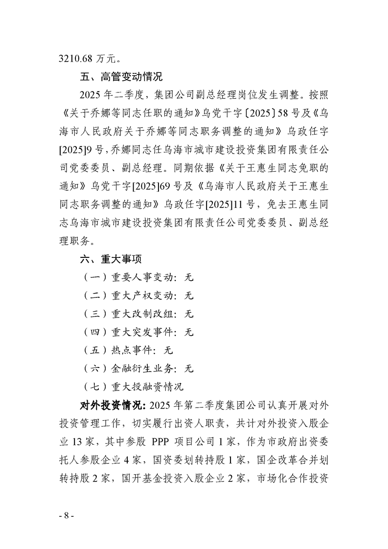 - 2025-10-21烏海市城市建設(shè)投資集團有限責(zé)任公司 2025年度第三季度信息公開報告