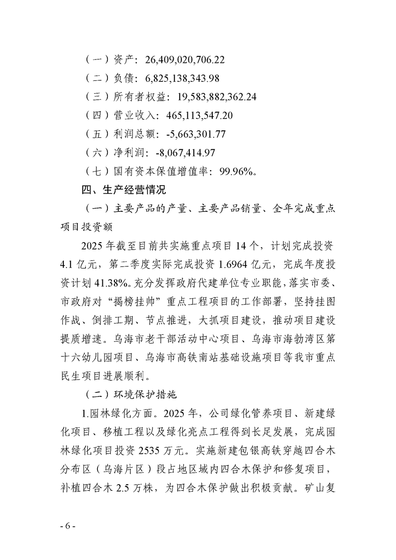 - 2025-04-23烏海市城市建設(shè)投資集團有限責(zé)任公司 2025年度第一季度信息公開報告